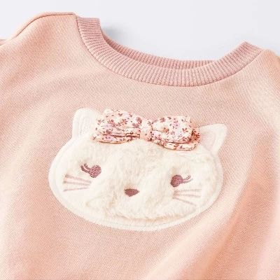 Give your child a cozy, cute look for any occasion with the pieces from the 2-Pieces Cat Applique Sweatshirt and Leggings Set from Cloud Island™. This pink outfit set includes a sweatshirt with a cat applique and a pair of floral-print legging pants with a full elastic waistband for a coordinated look. Made of midweight fabric, the pieces feel soft and cozy.