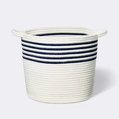 Keep your little one’s space neat and tidy with this Coiled Rope Bin with Color Band from Cloud Island™. This storage basket brings organization to your child’s room or baby’s nursery. It features a coiled rope construction with a color band design for a decorative textured look. The sturdy basket designed with a circular shape is ideal for stowing almost anything — from toys to craft supplies to small clothing items and more. The two attached handles offer carrying convenience to easily move this decorative storage basket around. Plus, it can be spot cleaned for easy care.
