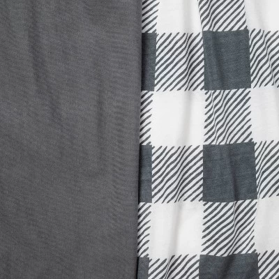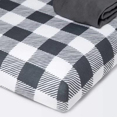 Add classic prints to your baby’s bedding with this 2-Pack Gray Fitted Playard Jersey Sheet Gingham from cloud island™. This crib sheet set makes for a must-have essential when it comes to your baby’s bedding. It includes two fitted sheets featuring black and gray gingham checks and a solid gray color for different choices. The full elastic trim keeps the sheet snugly in place for the perfect fit, while the 100% cotton fabric keeps their sleep space soft and comfortable throughout the day or night. Just coordinate these sheets with a matching baby blanket to create a comfy and cozy sleeping spot.